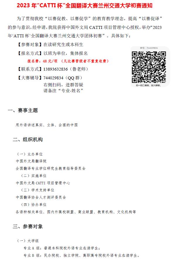 2023年“CATTI杯”全国翻译大赛兰州交通大学初赛通知