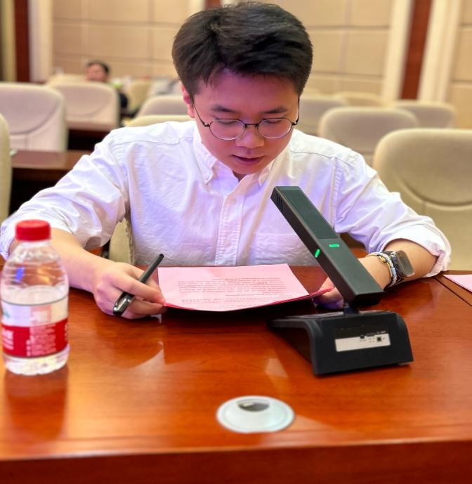 宫燚同学在口译过程中,展现了出色的双语转换能力和临场应变能力。他不仅准确无误地传达了开幕式现场的关键信息,还以沉着冷静的态度和流畅的语言表达,赢得了与会者的广泛赞誉。他的表现不仅是为个人未来的学习和职业发展积累宝贵的经验,也是对自身能力的一次大胆探索。